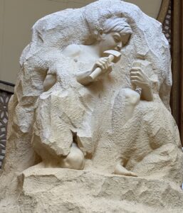 Last weekend I saw a sculpture of a man carving himself out of a block of stone in the Hindu temple, BAPS Shri Swaminarayan. The man wasn’t carving something separate, but bringing himself out of the stone with deliberation.
