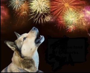 I went out into our front yard and stayed next to her as she expressed her aggression. I wondered where she would go if she got off her lead. She seemingly wanted to fly up into the sky to meet the colorful explosions head on!