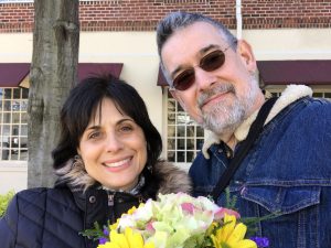 Every 3 months or so I and my wife, the lovely and incomparable Laura Baron, go on a special trip together, just the two of us. The purpose is to reconnect away from all the daily distractions and day-to-day responsibilities. This last week we went to Old Town Alexandria, where we had a chance Saturday morning to go to the oldest, continuous farmer’s market in the USA. In this picture we are holding a bouquet of flowers we bought to take back to our room.