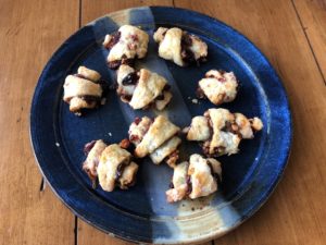 You can be proactive by creating your own good times. I made some cranberry-raisin-walnut rugelach over the weekend (see the photo above), and sent off a small batch to my sisters because I know they like it, too. That involved putting a few in plastic ware and writing a card – not much more. It’s a little thing, but it brought me some immediate happiness to think of them and take the time to say something nice. There will probably be an additional payoff when I get a text message or phone call thanking me. The real joy for me is the heartfelt connection that comes from the connection we share.