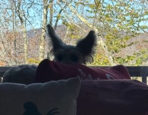 The attached photo shows the ears of a seven-month-old Yorkie mix I just had the opportunity to spend a couple of days with. Those ears are HUGE!