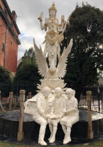I have the good fortune to work in downtown DC often, and every time I drive down Massachusetts Avenue toward DuPont Circle, I see the wonderful statue of Saraswathi pictured above. She stands in a garden in front of Indonesia’s embassy, glowing white and gold, with her four arms upraised and three studious children in front of her. And isn’t it a wonderful expression of religious freedom that the country with the world’s largest Muslim population chose a Hindu statue as a spiritual gift to Washington, DC? #iloveDC