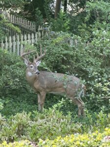 A lot of deer travel along this branch and into our neighborhood. The branch is protected on both sides by thick underbrush and large trees. My son took the attached picture of a buck in our backyard just a couple of weeks ago. I am sure it came to us through the creek.